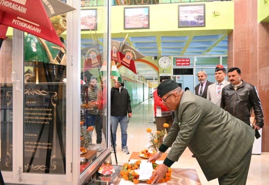 पिथौरागढ़ : कैबिनेट मंत्री गणेश जोशी ने पिथौरागढ़ स्थित जनरल बी.सी. जोशी आर्मी पब्लिक स्कूल पहुंचकर स्व. जनरल बी.सी. जोशी की प्रतिमा पर पुष्प चक्र अर्पित कर उन्हें श्रद्धांजलि दी।